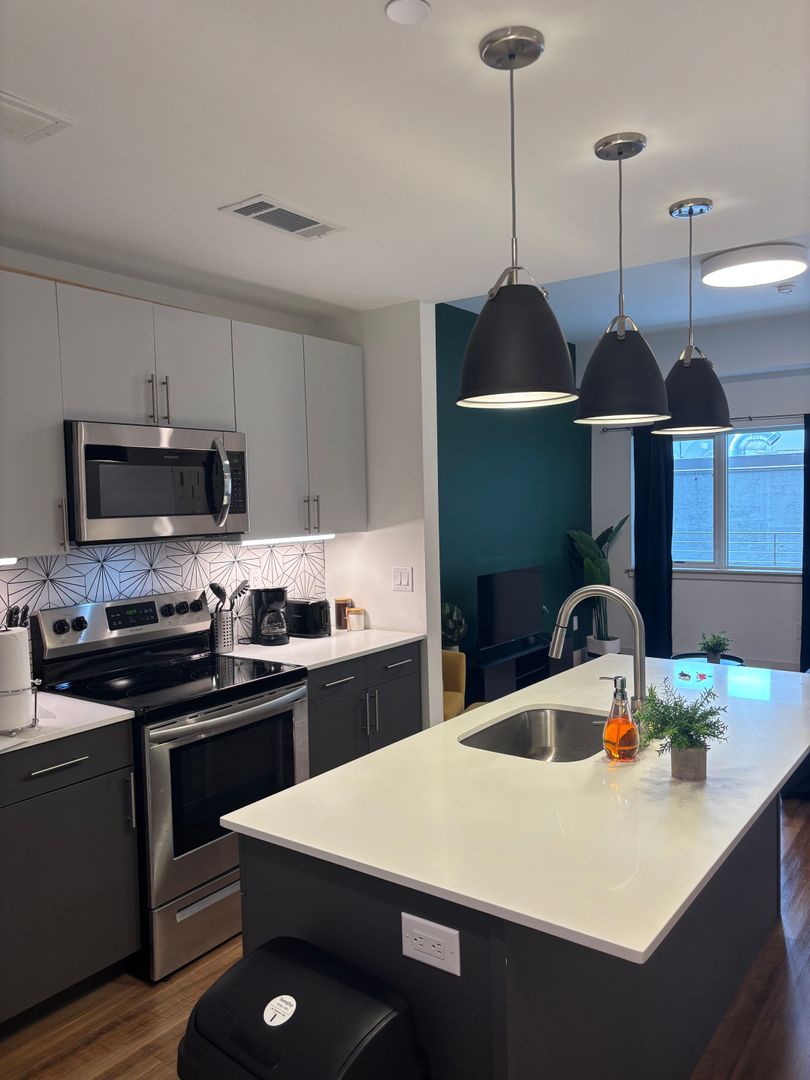 This apartment is located in one of Brewerytown's most exciting, friendly and architecturally dynamic buildings, The Glenwood. The Glenwood features an indoor/outdoor Community Lounge with Conference Room, so you can work from home and conduct your meetings from your building, a rooftop terrace with ample seating, firepits and grills, and a beautiful skyline view, a fitness center loaded with equipment, and an onsite parking garage. (Parking spaces in secure garage available to rent).
